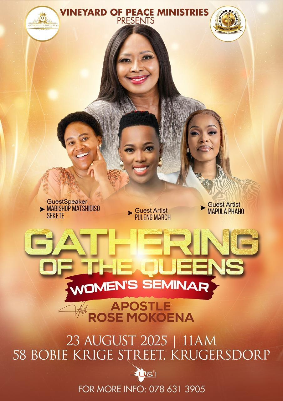 Vineyard of Peace Ministries is a Christ-centered, apostolic ministry under the leadership of Apostle Rose Mokoena, a founder, teacher, author, and visionary leader called by God to transform lives through the Gospel of Jesus Christ.
